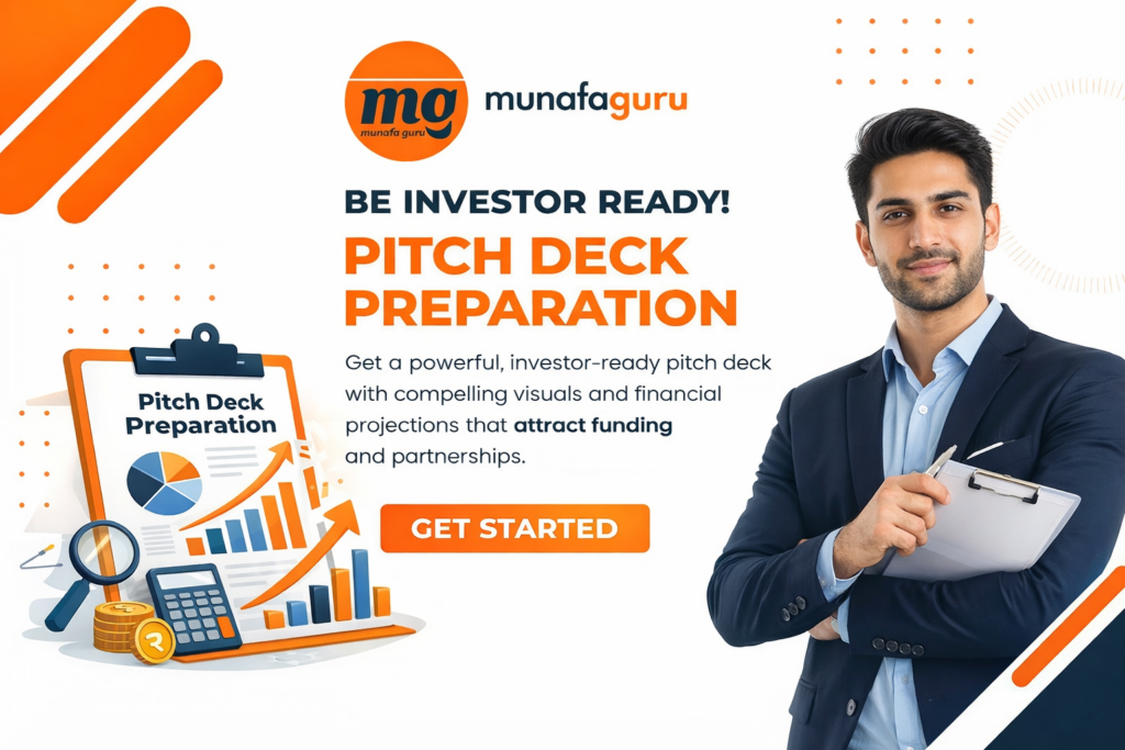 At MunafaGuru, we provide end-to-end business solutions including Startup India registration, company incorporation, LLP/partnership registration, GST, MSME, accounting, pitch deck preparation, import-export guidance, and government subsidy support.